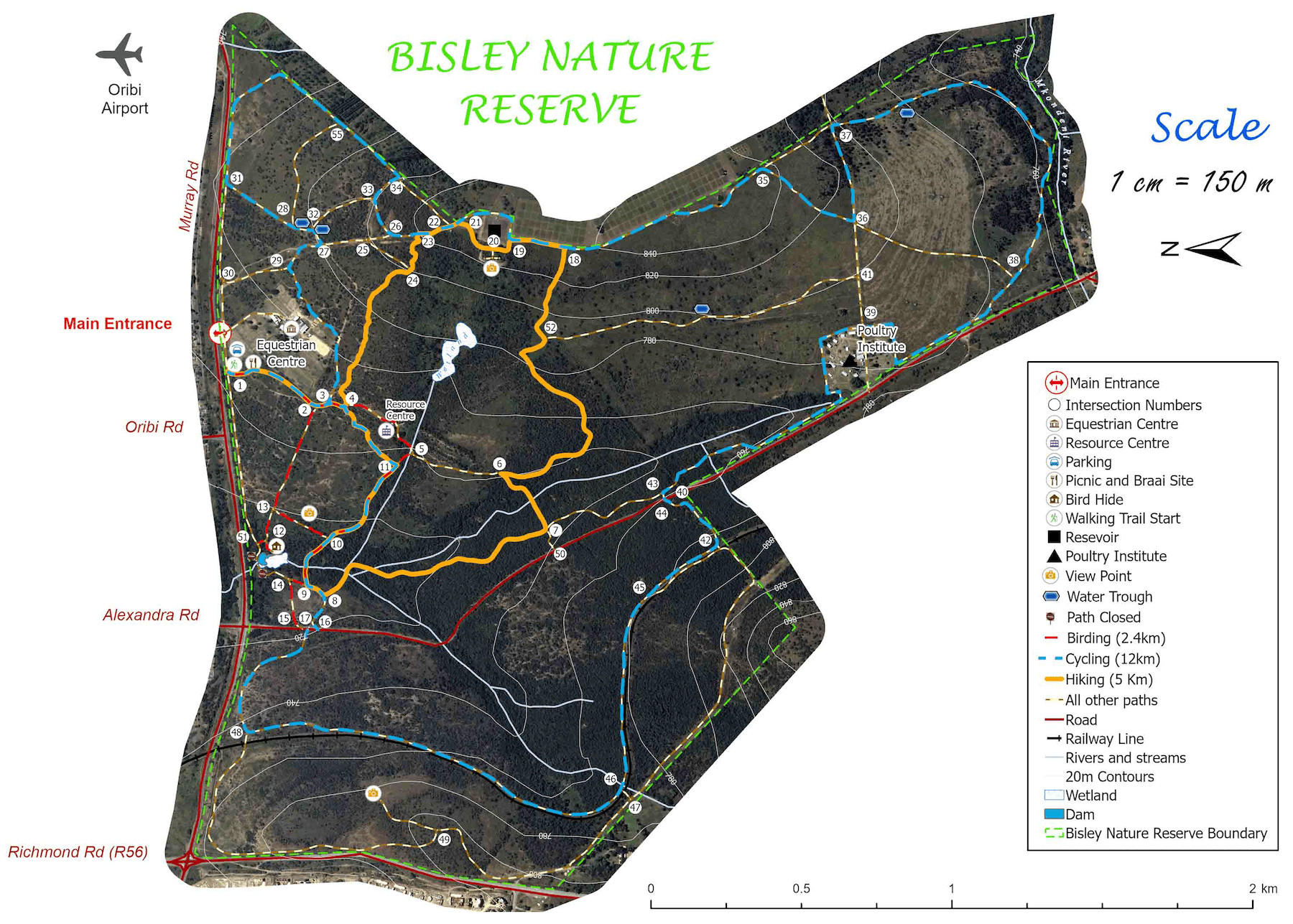 Over the years the upkeep of the reserve has been seen as a low priority by the Municipality and the property has fallen into disrepair. In response to incidents of poaching and animal malnutrition (partly due to drought), the Friends of Bisley Nature Reserve (FoBNR) was formed by concerned citizens. The FoBNR took a closer look at the reserve and found that everything from boundary fences, trails and picnic sites, as well as an education centre, had fallen into a state of disrepair.